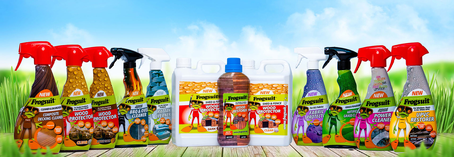 Frogsuit, a range of award-winning wood protectors, wood restorers, garden maintenance, and cleaning products.